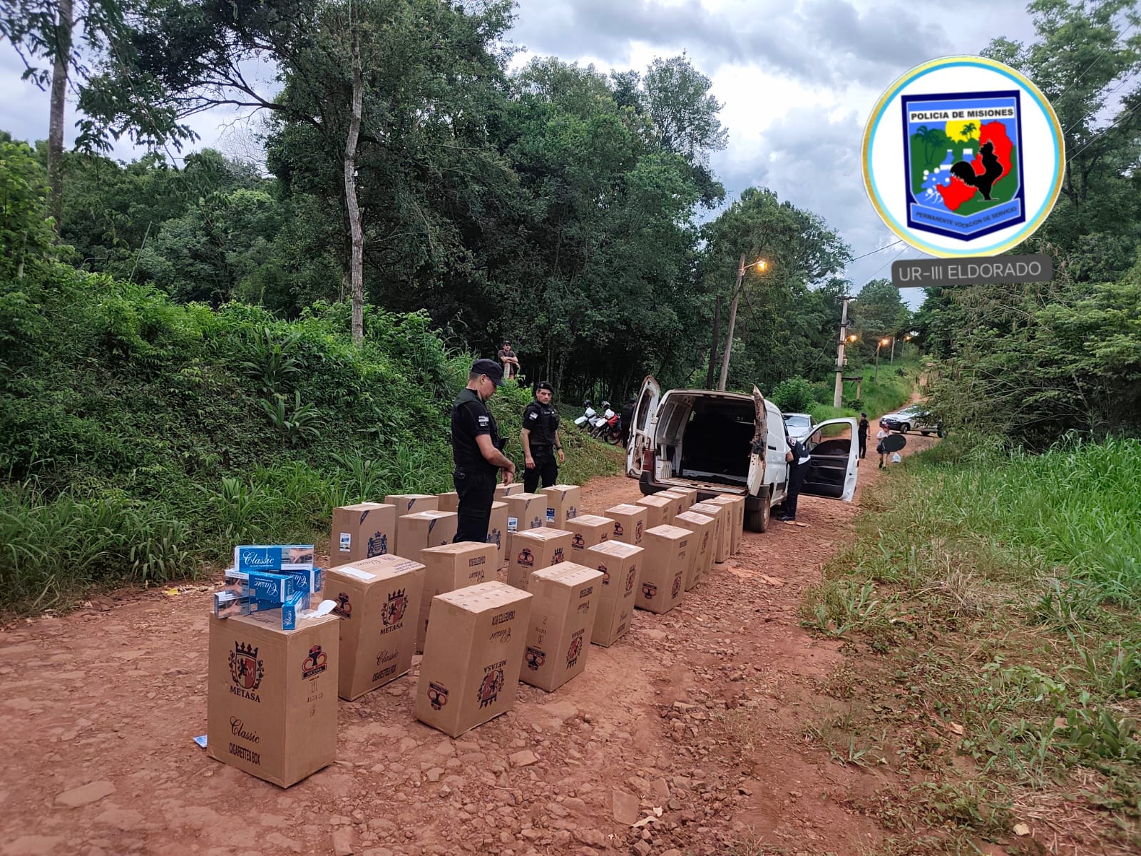 Minutos más tarde, en el marco de las tareas de búsqueda, los efectivos lograron localizar el vehículo sobre calle 25 de Mayo, en el kilómetro 5. Al inspeccionarlo, constataron que transportaba una importante carga de cigarrillos de origen ilegal, por lo que se procedió a resguardar el lugar y solicitar la intervención de Policía Científica.